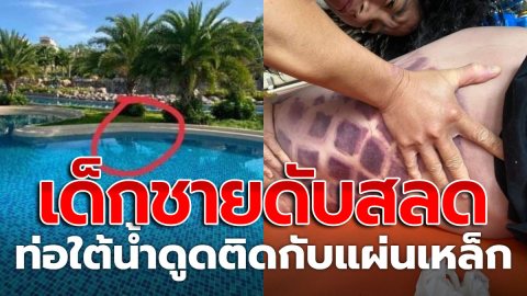 RIP. เด็กชายเล่นสระน้ำรีสอร์ทดัง ถูกท่อใต้น้ำดูดติดกับแผ่นเหล็ก สุดท้ายเสียชีวิต