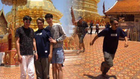 ที่นี่ประเทศไทย 3 หนุ่มยืนถ่ายรูปเป็นที่ระลึก ไม่กี่วินาทีถัดมาถึงกับวิ่งกันกระเจิง