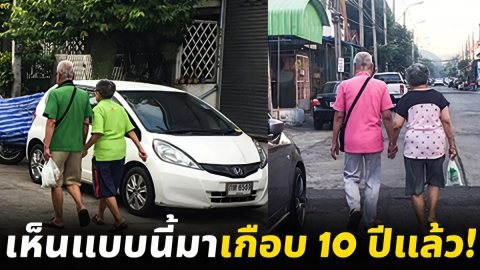 สุดน่ารัก ตา-ยาย เดินจับมือกันมาทานข้าวทุกเช้า แถมใส่เสื้อคู่สีเดียวกันตามวัน