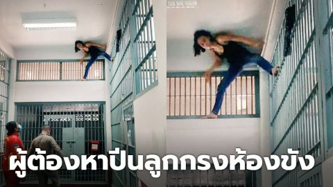 สาวชุดดำ! อายุ 37 ปี เครียดสุดขีด หลังถูกจับคดีอาวุธปืน ปีนลูกกรงห้องขัง สน.สุทธิสาร หลบหนีเจ้าหน้าที่