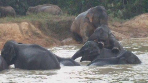 เผยภาพหาชมยากช้างป่า 44 เชือก ลงเล่นน้ำ อ่างเก็บน้ำห้วยแห้ง อช.แก่งกระจาน