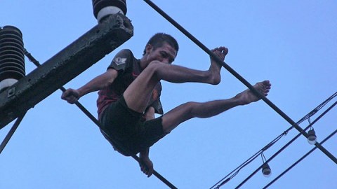 ชายไม่ทราบชื่อปีนเสาไฟฟ้า ก่อนหมดแรงร่วงตกลงมาอาการน่าเป็นห่วง