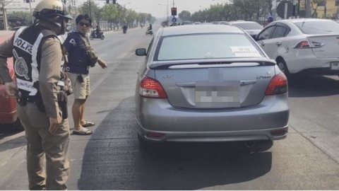 เก๋งจอดนิ่งกลางสี่เเยก ไฟเขียวหลายรอบก็ไม่ขยับ ตำรวจต้องเดินไปชะโงกมอง
