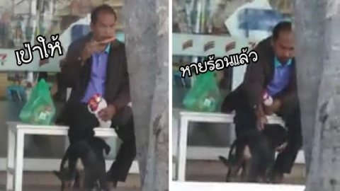 คุณลุงใจดีซื้อไส้กรอกให้น้องหมาในปั๊ม เป่าให้หายร้อนแล้วค่อยป้อน ชาวเนตแห่ชื่นชม