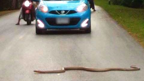 ผู้คนพบเห็นกันจนชิน ต้องหยุดรถหลีกทางให้ ลุ้นเอาว่าจะเล็กหรือใหญ่
