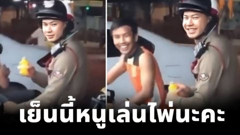 ตำรวจหนุ่ม เขินหนัก หลังโดนแซวกลางที่สาธารณะ