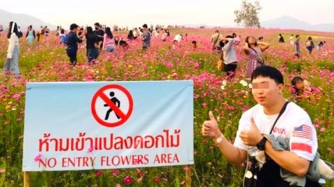 หนุ่มโพสต์ ไปเที่ยวสวนดอกไม้ มีป้ายห้ามโชว์หรา แต่สิ่งที่เห็นด้านหลังมันคืออะไร