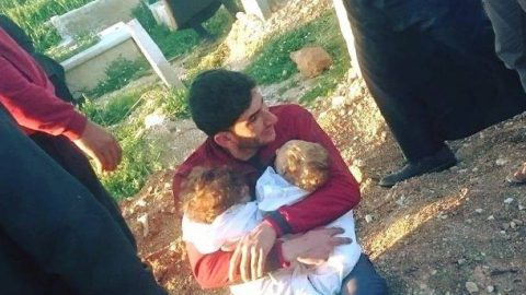ใจจะขาด ภาพสุดสะเทือนใจพ่ออุ้มร่างลูกแฝดหลังโดนระเบิดในซีเรีย