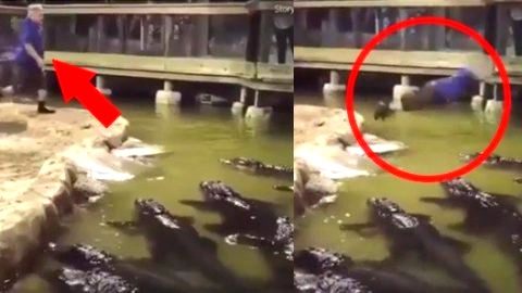 คนดูช๊อก!! ตาวัย 80 กระโดดลงบ่อ “จระเข้” สยองมาก (มีคลิป)