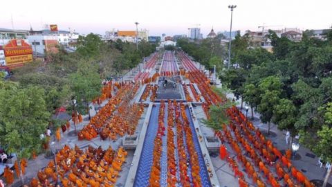 เผยภาพพิธีทำบุญตักบาตร พระสงฆ์ 10000 รูป หลังเหตุการณ์กราดยิงโคราช