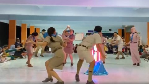 คุณครูโชว์สเต็ปเต้นเพลงวิบวับกับเพลงมะล่องก่องแก่งกลางค่ายลูกเสือ (มีคลิป)