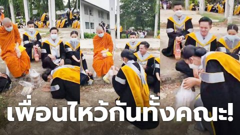 เพื่อนไหว้กันทั้งคณะ! สาวเผยคลิป เมื่อบวชแล้วเรียบจบ ก็จะประมาณนี้ ถวายเพลหลวงเพื่อนที่รัก