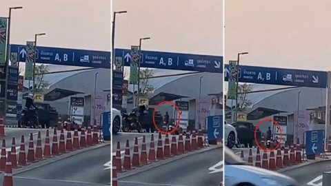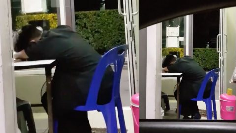 สาวขับรถจะเข้าหมู่บ้าน เจอ รปภ.ฟุบหลับคาโต๊ะ ก่อนเปิดปากตะโกนร้องลั่นจนสุดเสียง