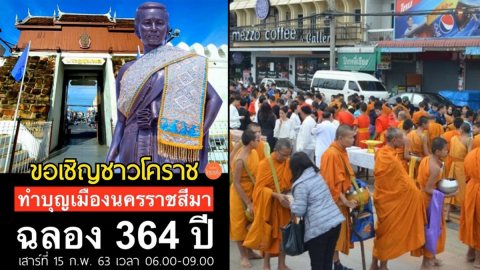 ขอเชิญชาวจังหวัดนครราชสีมา ทำบุญใหญ่ครบรอบ 364 ปี