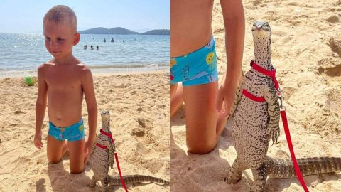 เลี้ยงหมาแมวธรรมดาโลกไม่จำ! ชาวเน็ตตะลึง หนูน้อยใช้สายจูง "น้องเอี้ย" สุดคิ้ว เดินเล่นตามชายหาด