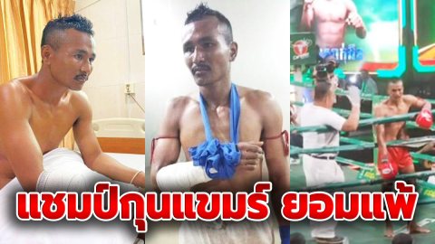 "แชมป์กุนแขมร์ "ไม่เอาแล้ว! ยอมแพ้หลังโดน "แสนศักดิ์เงิน" มวยไทยเตะแขนหัก