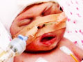 เด็กที่เกิดมาพร้อมส่วนเกินของใบหน้าที่ใหญ่กว่าหัว