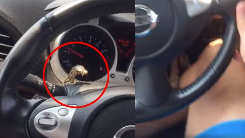 หนุ่มแทบเสียสติ ขับรถอยู่ดีๆ เจอแขกไม่ได้รับเชิญโผล่ออกมาทักทาย (มีคลิป)