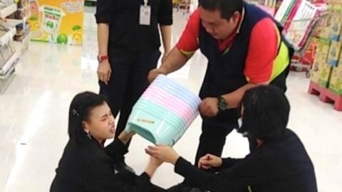 พนักงานมาช่วยกว่าจะดึงออกได้