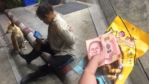 คุณลุง นั่งนับเหรียญ เดินไปซื้อนมให้หมาจรกิน ถึงตัวไม่มีเงินแต่ใจพร้อมแบ่งปัน