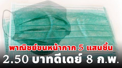 พาณิชย์ขนหน้ากาก5แสนชิ้น ขายแค่2.50บาท เริ่ม 8 ก.พ. นี้