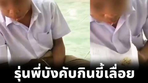 เปิดคลิปรุ่นพี่บังคับรุ่นน้องให้กินขี้เลื้อย โทษฐานที่ไม่เชื่อฟังรุ่นพี่ น้องจำใจกินไปน้ำตาไหลไป (มีคลิป)
