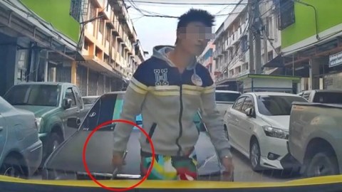 กร่างบนถนนอีก!! โจ๋บางพลีควงท่อนเหล็กขู่ตีลุงวัย50..แต่ลุงทำแบบนี้