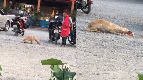 สาวเห็นแม่ค้าแสดงพฤติกรรมประหลาดกับสุนัข ก่อนหยิบโทรศัพท์ขึ้นมาซูมเห็นต้องกราบหัวใจ