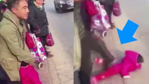 ชาวเน็ตจีนเดือด! คลิปพ่อแท้ๆ กระทืบลูกตัวนิดเดียวกลางถนน
