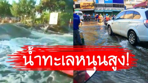 น้ำทะเลหนุนสูง ไหลเข้าท่วมถนนทั้งสองฝั่ง ย่านสมุทรปราการ