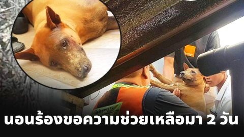 เจ้าของร้านอาหารได้ยินเสียงร้องปริศนา ก่อนไปดูซอกกำแพงเห็นตูบน้ำตาไหล โทรแจ้งกู้ภัยด่วน