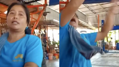 สาวพนักงานคาร์แคร์ ตั้งใจทำงาน เช็ดกระจกให้ลูกค้า ไม่ทันสังเกตุว่ามีคนอยู่ข้างในรถ