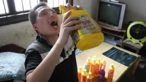 หนุ่มสุดเพี้ยน ติดเกมจนเบลอ เผลอกระดกน้ำยาซักผ้า นึกว่าน้ำอัดลม