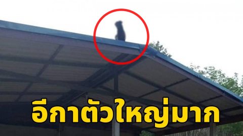 “ป้า” ขับรถผ่านหน้าบ้านนึกว่า “อีกาตัวใหญ่” เกาะอยู่บนหลังคา ที่แท้คือ..