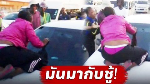 เมียสุดจะทน เห็นสามีมากับหญิงอื่น โมโหสุดขีดกระโดดเกาะหน้ารถผัว