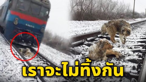 สุนัข ใจกล้าวิ่งไปช่วยเพื่อน ที่ติดอยู่กลางรางรถไฟ หวาดเสียวมากจนเกือบโดนชน