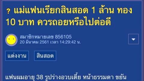 แม่แฟนเรียกสินสอด 1 ล้าน ทอง 10 บาท ควรถอยหรือไปต่อดี