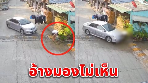 คนไทยช่วยกันดูที แบบนี้มันตั้งใจหรือไม่ เก๋งถอยหลังตั้งลำ ก่อนขับพุ่งชนคนเก็บกวาดหน้าบ้านอยู่ดับคาที่