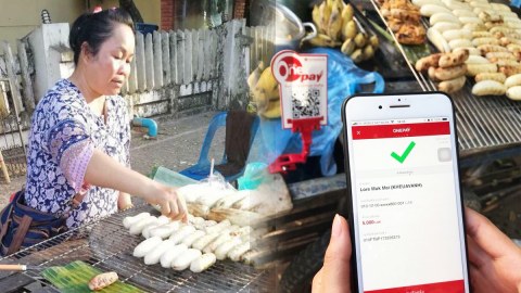 แม่ค้ากล้วยปิ้งที่เวียงจันทน์ให้ลูกค้าจ่ายเงินผ่าน QR Code ได้แล้ว