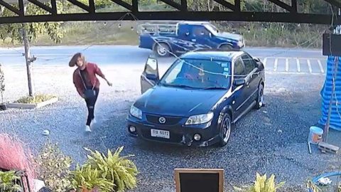 สาวถอยรถเก๋งไม่ได้ ลงมาเอาหินขัดล้อออกไว้ สุดท้ายเป็นยังไงไปดู