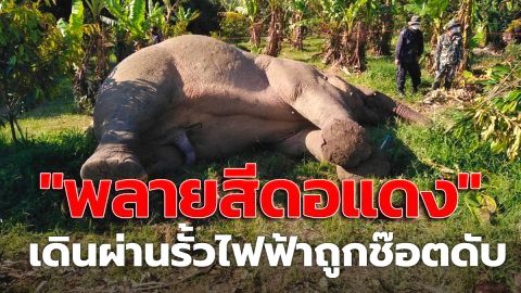 สุดเศร้า! ล้มแล้ว "พลายสีดอแดง" เดินผ่านรั้วไฟฟ้าถูกช๊อตดับ