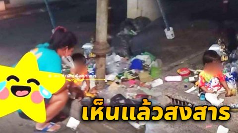 สาวหดหู่ใจ เหลือบไปเห็นหนูน้อยนั่งข้างกองขยะ มองพ่อแม่ทำงาน