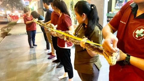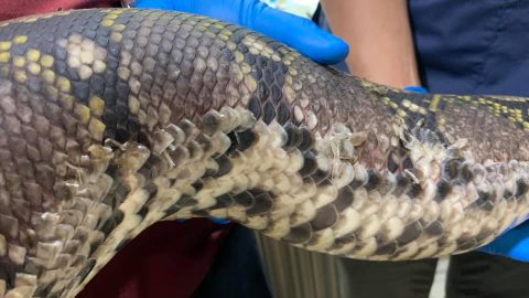 แพทย์เร่งช่วยชีวิตงูเหลือมยักษ์ยาวกว่า 4 เมตร ถูกไฟคลอกทั่วทั้งตัว หลังมีชาวบ้านเผาป่า