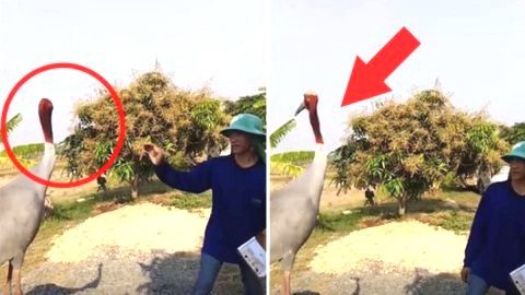 ชาวบ้านฮือฮา พบนกกระเรียนไทย ตัวใหญ่กว่าคน