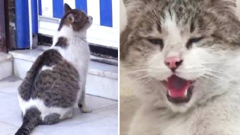 แมวจรจัดมาร้องเมี๊ยวๆขอความช่วยเหลือหน้าประตูคลีนิค หลังรู้ว่าตัวเองท้องโตไม่ไหวแล้ว