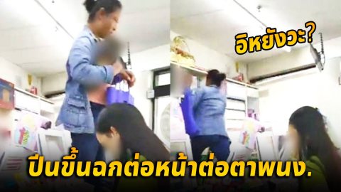 พนักงานถึงกับงง ป้าสติหลุดปีนเคาน์เตอร์ ฉกสุราเดินออกจากร้านหน้าตาเฉย (มีคลิป)