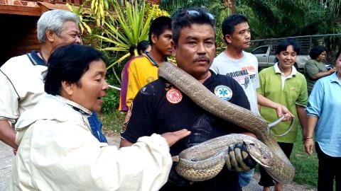 2ตายายลมเเทบจับ นั่งกินข้าวเย็นเจอพญาจงอางชูคอเเผ่เเม่เบี้ยกลางบ้าน