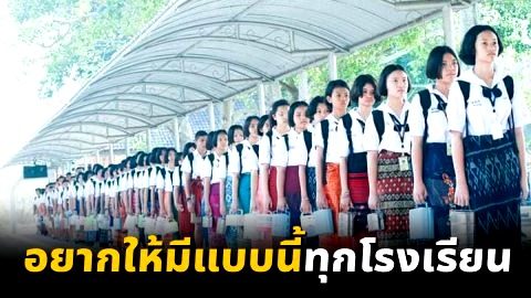 นร.พร้อมใจกันนุ่งซิ่น หิ้วปิ่นโตลดถุงพลาสติก เดินแถวเรียงหนึ่งเข้าโรงเรียนกันอย่างเป็นระเบียบ