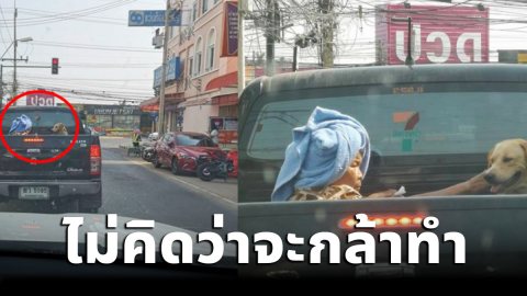 สาวเห็นยๅยนั่งหลังกระบะ กับสุนัข ซูมดูชัดๆเป็นอย่างที่คิด