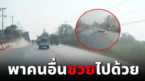 รถบรรทุก ซิ่งแซงซ้าย ก่อนเสียหลักพลิกคว่ำ ชนคันอื่นเกลื่อนกลางถนน